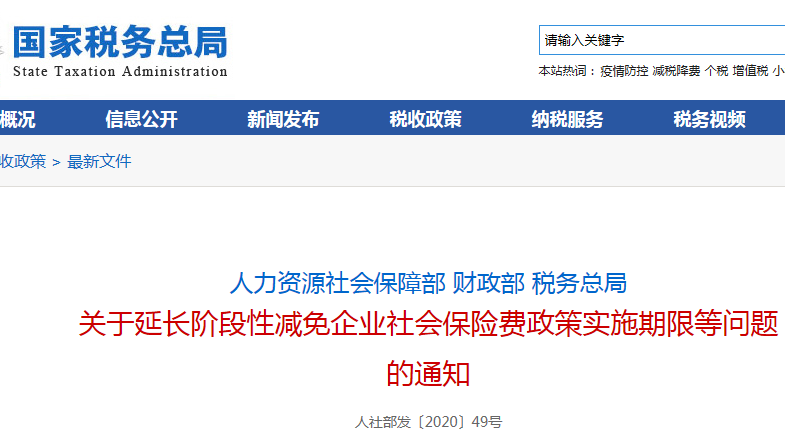 按照党中央、国务院决策部署,人力资源社会保障部、财政部、税务总局印发《关于阶段性减免企业社会保险费的通知》(人社部发〔2020〕11号),自2020年2月起阶段性减免企业基本养老保险、失业保险、工伤保险(以下称三项社会保险)单位缴费部分,减轻了企业负担,有力支持了企业复工复产。为进一步帮助企业特别是中小微企业应对风险、渡过难关,减轻企业和低收入参保人员今年的缴费负担,经国务院同意,现就延长阶段性减免企业三项社会保险费政策实施期限等问题通知如下: